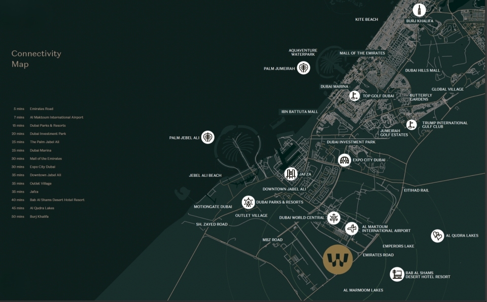 Nestled in the dynamic core of Dubai South, Waada is thoughtfully designed around people, nature, and seamless connectivity. Positioned just minutes from Expo City Dubai and Al Maktoum International Airport, this future-facing district delivers unparalleled access through major roads like Sheikh Mohammed Bin Zayed and Emirates Road—making it one of the most connected and walkable neighborhoods in Dubai.